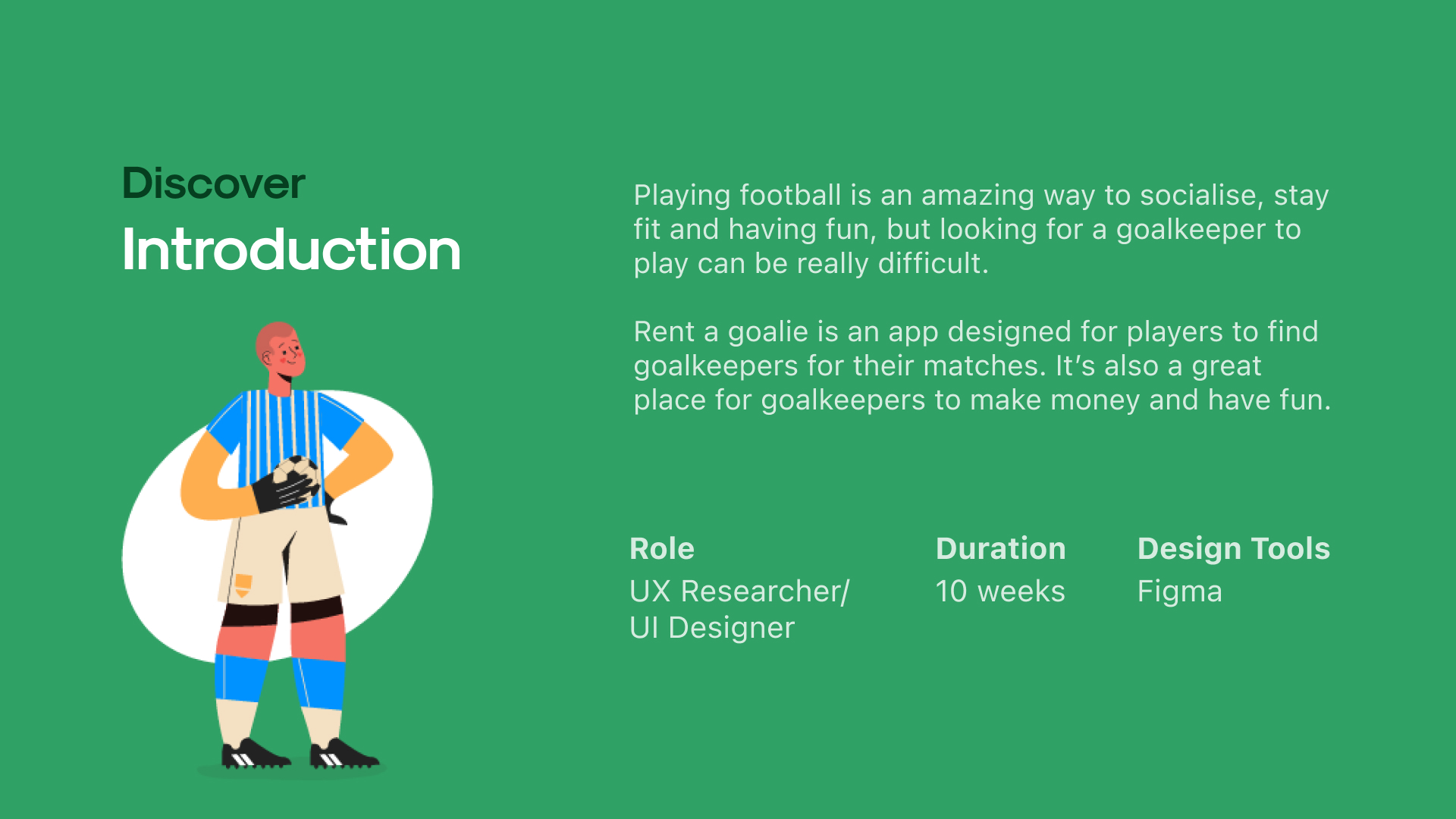 Rent a goalie is an app designed for players to find goalkeepers for their matches. It’s also a great place for goalkeepers to make money and have fun.Role: UX Researcher/UI Designer
